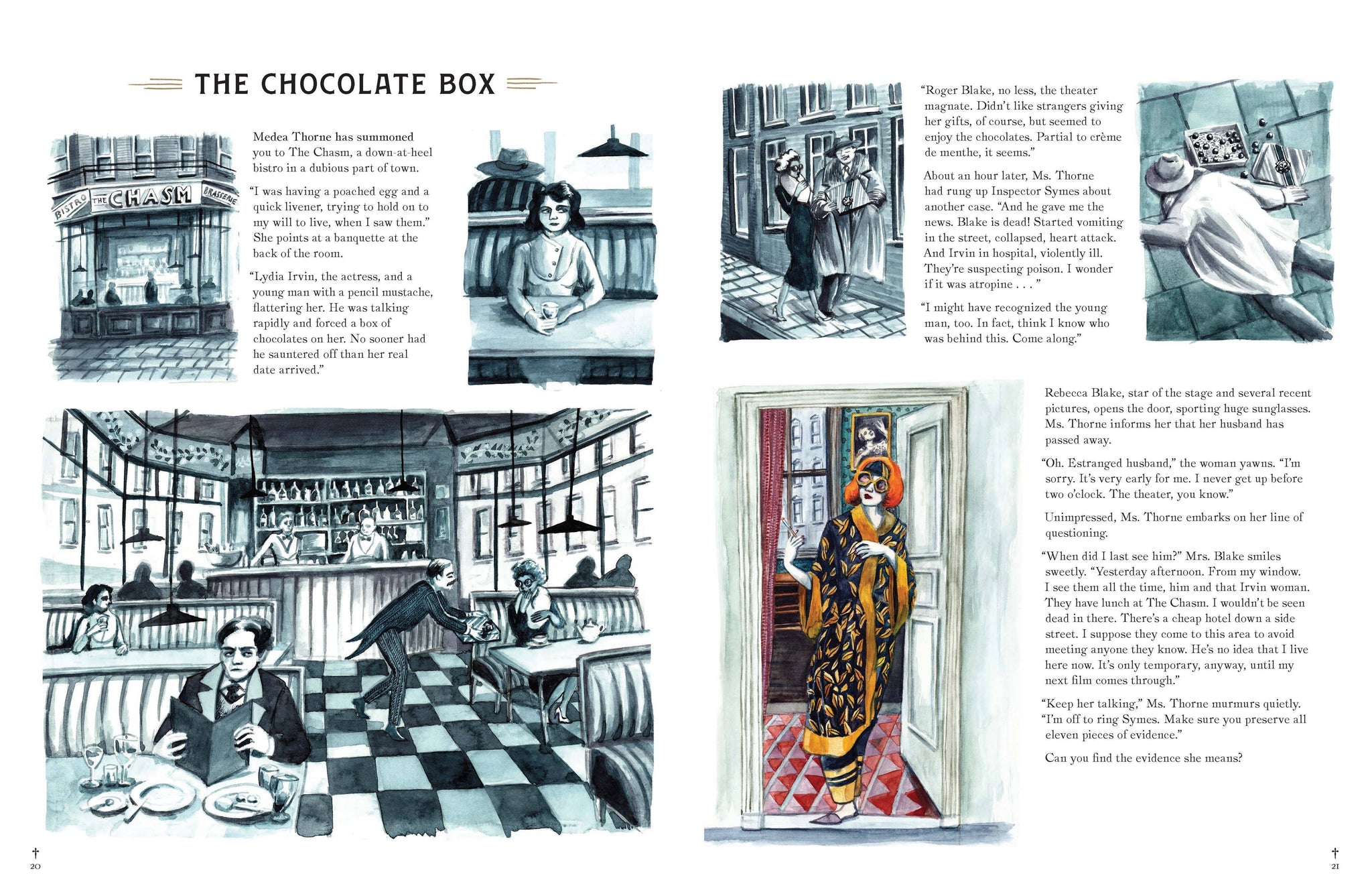 Murder Most Puzzling is a gorgeous and witty book that invites readers to play detective and solve a series of absorbing, murder-mystery-themed puzzles. Readers are cast as the faithful sidekick to amateur sleuth Medea Thorne in order to solve 20 puzzling cases. Meet a cast of colorful characters—from ghost hunter extraordinaire Augustin Artaud, to Leonard Fanshawe, a competitor in the Annual Perfect Pickled Foods Festival. • A witty riff on the classic whodunit that brings out everyone's inner detective • Each mystery is sumptuously illustrated. • The mysteries require different deductive tactics, making them a good brain exercise A body in the topiary garden, a death at a clairvoyants' convention, and the mysterious accident of the boating lake—prepare for a whirlwind adventure, laced with humor and a dash of the macabre.